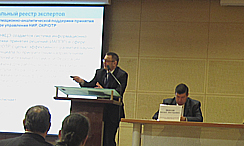 Генеральный директор ФГБНУ «Научно-исследовательский институт – Республиканский исследовательский научно-консультационный центр экспертизы» Бахтурин Геннадий Иванович представил сообщение на тему «Новая редакция федерального реестра экспертов», в котором информировал участников мероприятия о том, что в ФГБНУ НИИ РИНКЦЭ создается система информационно-аналитической поддержки принятия решений (ИАППР) в сфере управления НИР, ОКР/ОТР с целью эффективного развития научно-технологического потенциала по приоритетным направлениям развития науки, технологий и техники Российской Федерации.