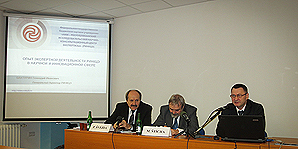 На пленарном заседании с докладом «Опыт экспертной деятельности ФГБНУ НИИ РИНКЦЭ в научно-технической сфере» выступил генеральный директор института Бахтурин Г.И., где он представил ФГБНУ НИИ РИНКЦЭ, как многопрофильную научно-исследовательскую, экспертную и научно-консультационную организацию, которая выполняет комплексные работы в области экспертизы, консалтинга, организации конкурсов проектов, разработки информационных ресурсов, сертификации, и в других областях, обеспечивающих научно-техническую деятельность.